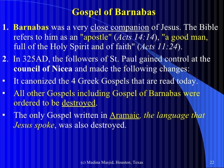- This bible/injil is believed to be written by Barnabas, an apostle of Jesus/Yeshua/ Isa. Although it has been hidden for a long while, thanks to the Creator, it is. Barnabas in the New Testament vii. Life and Message of Barnabas x. The Gospel of Jesus. How the Gospel of Barnabas Appendix.
